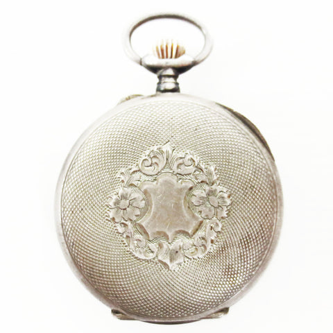 Antique 1880's Aster Pocket Watch Pendant 800 Silver, Open Face, Sec Sub Dial, K&L Case