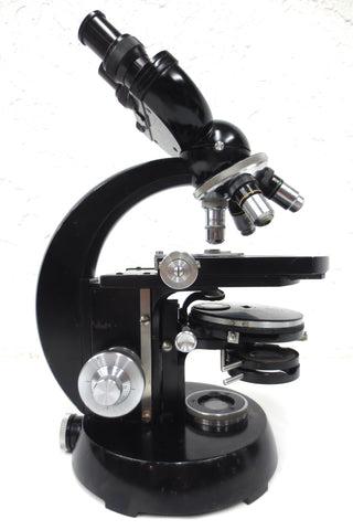 Excellent condition, very clean, functional. 7 accessories included, no box. Vintage bi-ocular microscope model 4349008 by Carl Zeiss Germany. Includes: