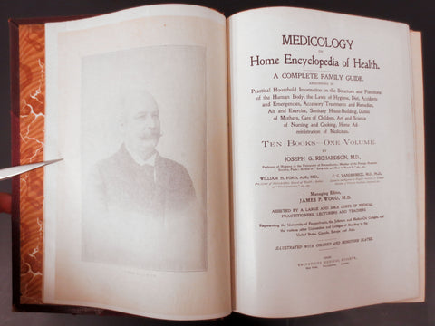 Hundreds of unfolding anatomy graphics, color and black and white illustrations. This is a special edition containing 10 books compiled by Doctor Joseph G. Richardson in 1903. Published by the University Medical Society in New York. Editor is James P. Wood M.D. Volume still has a sturdy binding and covers hold well. Pages and graphics are in mint condition. Exterior side shows age.