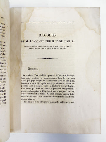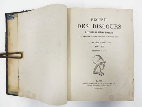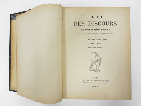 3 original 1800's books published by the French Academy (Académie Française), original leather bindings still holding, no loose or missing pages. Contain speeches, reports and inaugurations presented by French Academy members, directors and famous authors such as Lamartine, Dumas and Comptes Philippe de Ségur. All 3 volumes are in French, entitled "Discours et Rapports de l'Académie Française" and cover periods 1830-1839, 1870-1879 and 1880-1889 (Part II). Published in Paris by Firmin-Didot. Books were owned by Doctor Jacques Fortier, renowned doctor and author from Montreal (Quebec, Canada) in the early 1900's. Each book measures 8 7/8 X 10 7/8 inches, total weight 16 pounds.