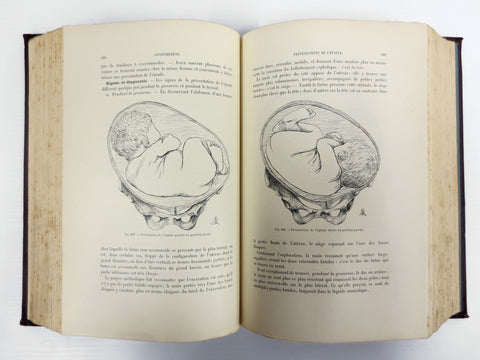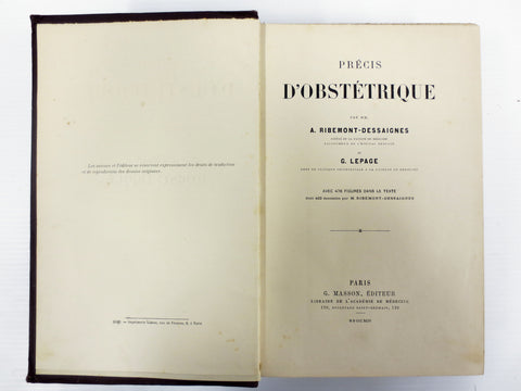 Excellent condition, original medical obstetrics book from 1894, 476 beautiful childbirth illustrations. Sturdy binding, complete, no loose pages. Written in French by obstetricians Ribemont-Dessaignes and G. Lepage, published in Paris in 1894 by G. Masson. 1324 pages, measures 7 X 10 1/4 inches.