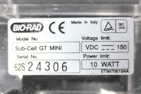 Tested, working, very clean. Health Canada surplus. Complete laboratory electrophoresis cell model Sub-Cell GT Mini by Bio-Rad, serial 24306, made in Italy. Includes: