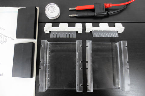 - Instructions manual, 2 fixed combs, 2 gel trays, 1 pair of casting gates, original Bio-Rad leads and 2 round levels.