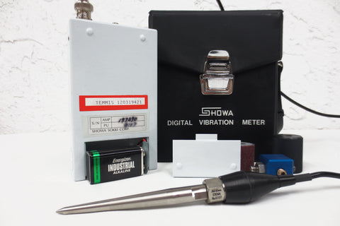 Like new, complete with all 7 accessories, case and manual. Tested and fully functional. High quality handheld digital vibration meter model 1332 by Showa Sokki, Japan. Previously owned by Canada's National Defense and acquired at auction. Includes its original Showa Sokki case, all 5 original accessories, 2 connectors and Japanese manual (English provided upon request). The manual and meter have the same serial and the inspection seal is intact (never opened). The meter works with a standard 9 volts battery (included). It measures acceleration, velocity (speed) and vibration displacement. It has a clear digital screen, an output, a PU input and 5 buttons (on/off, acc., vel., disp. and hold). Meter measures 3 X 5.5 inches. Sturdy and compact vinyle case with a shoulder strap, measures 6 x 5 inches. Serials may vary from photo since we have 4 meters for sale, same new condition.