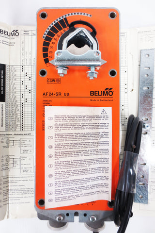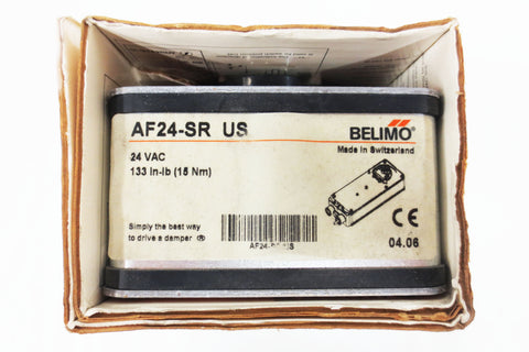 New with box, complete with instructions and brackets. Perfect condition, fully functional. Spring Return Actuator by Belimo, model AF24-SR US. Specifications: 133 in-lb (15 Nm), Damper approx. 33 sq. ft, 24VAC/DC, Spring Return, Modulating and Fail-safe. Device measures 3 7/8 X 10 3/4 X 3 1/4 and weighs 2.8 kg.