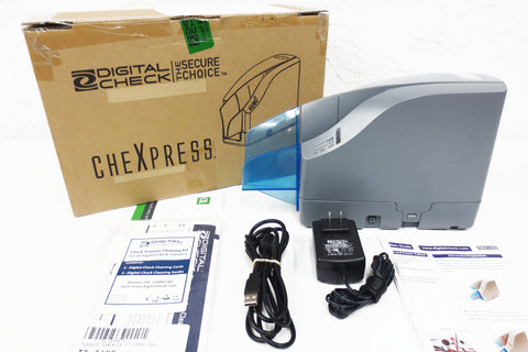 New, open box, ready to use. Complete with its original box, instructions, warranty, power supply and cable. Compact scanner for checks model CheXpress CX30 152001-01 by Digital Check. Automatic feeder, scans front and back of checks and MICR code line. Scans up to 30 documents/minute.