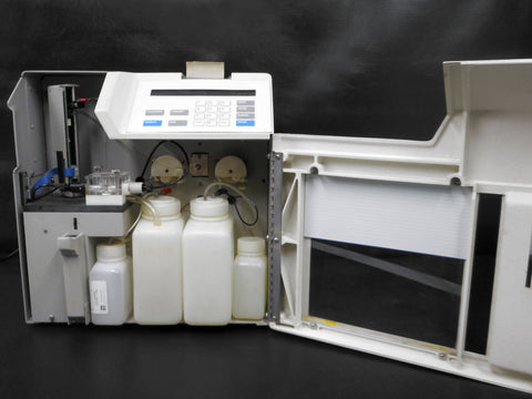 Complete, functional, professionally cleaned inside out. Has its original manufacturer's tags, power cord, waste, buffer and solution bottles. This is model 2700TX-D signed YSI Yellow Springs Instrument Ohio. Serial number 91A022819. Its digital screen display, buttons and functions work well. Minor surface scuffs, no broken parts. Configured as a single or dual channel unit. As a single channel, it provides quick measurements of any of the following analytes: D-Glucose (Dextrose), Sucrose, Ethanol, Lactose, L-Lactate, L-Glutamate, Choline, L-Glutamine, Methanol, Galactose 1, Hydrogen Peroxide and Wylose 2. As a dual channel, it provides simultaneous measurements of the following combined analytes: Dextrose and L-Lactage, Dextrose and Sucrose, L-Glutamate and L-Glutamine 1. The default parameter of several functions can be adapted to your needs. Aspirated sample size can be set from 5 to 65 microliters.