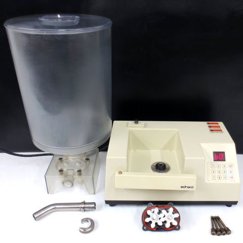 Complete with its power base, hopper, lid and spout. Serviced and fully functional. Programmable donuts and pastry jelly filler model MK P-4010 by Edhard, serial 45544.