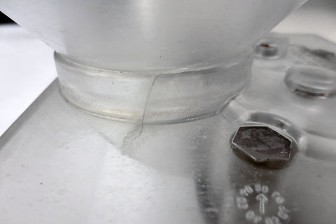 - FHP-3341 hopper/reservoir, 10" diameter, 16 1/2" tall. Small crack repaired on the neck, see photo #10.