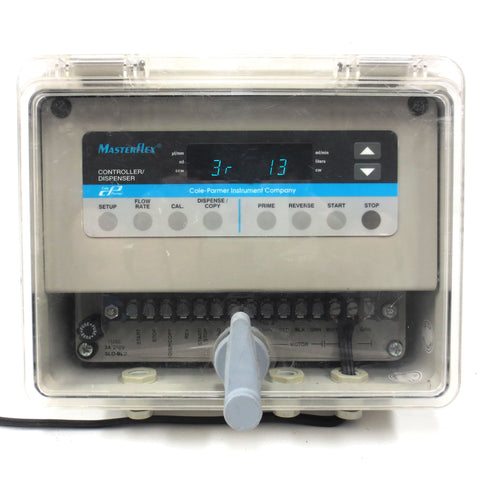 Tested and working, very clean. Cole-Parmer Masterflex digital controller and dispenser model 77300-70. See through door has a sturdy lock, light scratches only. Surplus industrial instrument from a plant in Montreal (Quebec, Canada). Measures 10 X 9 X 7 inches and weighs 2.6 kg.