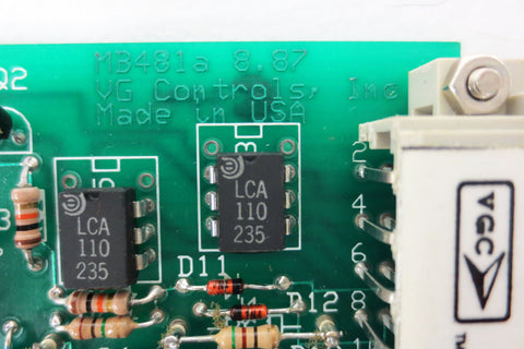 New industrial control module circuit card by VG Controls USA, model MB481a 8.87. Industrial electronic surplus from a plant in Montreal (Quebec, Canada).