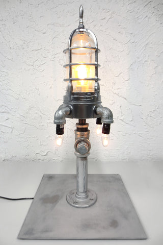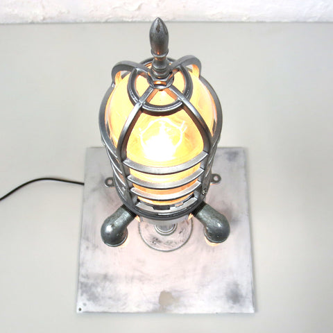 Industrial Rocket Table Desk Lamp 22" Explosion Proof Glass Dome, Upcycled Lamp
