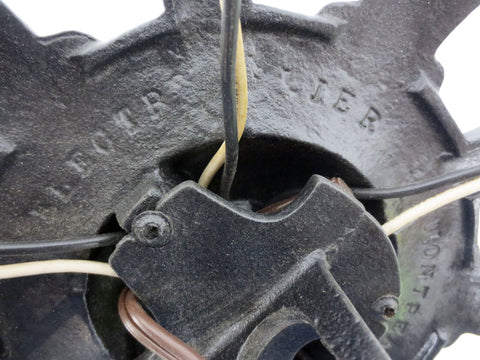 Beautiful design, working, ready to install, excellent condition. 16" diameter. Signed Electrolier Montreal 705. Original chain and ceiling canopy included. Heavy cast iron. High quality porcelain sockets, clean wires. Black paint in perfect shape. Looks great with vanity light bulbs (see photos) as well as new/old Edison lights.