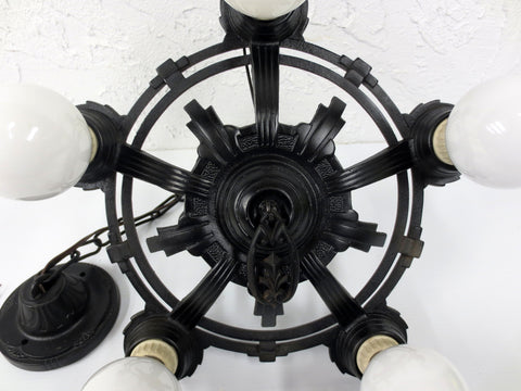 Vintage Art Deco 5 Lights Slip Shade Chandelier 16" Electrolier Montreal Black
