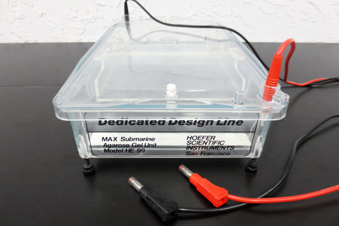 Tested, working, very clean. Health Canada surplus. Laboratory Max Submarine Gel Electrophoresis Agarose unit model HE 99 by Hoefer Scientific Instruments, San Francisco. Includes: