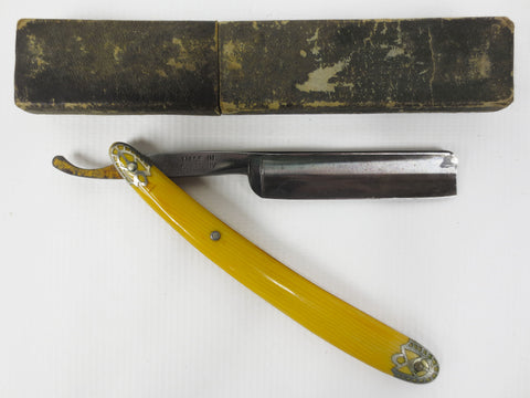 Antique Barber Straight Razor 9 1/2" Bellefontaine Barber's Gem from Montreal, Germany, Hand Painted Barber's Pole, Original Box
