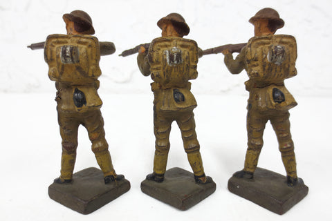 3 WWII Vintage Toy American Soldiers Figurines 3" by Elastolin Lineol, Germany, Matching Set