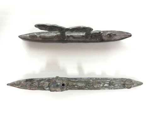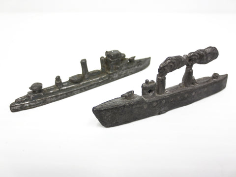 Both lead boats are in excellent condition, no broken parts, heavy (not hollow). Unique steam ship with smoke coming out of 2 chimneys and one gun turret (or harpoon) on front, measures 2 3/4" long. Also a very detailed submarine or U-boat, measures 3 1/4" long. 2 very beautiful pieces. Models suggest they may be from the 1940's.