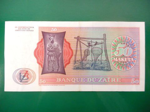 1973 Zaire 50 Makuta Africa Banknote Money Currency, Extremely Fine XF/EF-40, D6271439A