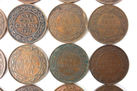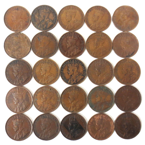 25 Coins Collection Lot of One 1 Cent Canada Coins 1912 1913 1916 1917 1918 1919