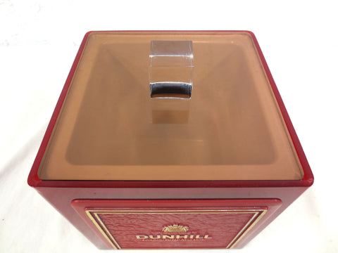 Excellent condition, very clean inside out, cool mid century modern design. Measures 6.5 X 6.5 inches. Translucent red body with an amber cover. Very light scratches only. Signed "Dunhill, London, Paris, New York, By appointment to Her Majesty the Queen, Suppliers of Smokers Requisites, Alfred Dunhill LTD London, The Most Distinguished Tobacco House in the World".