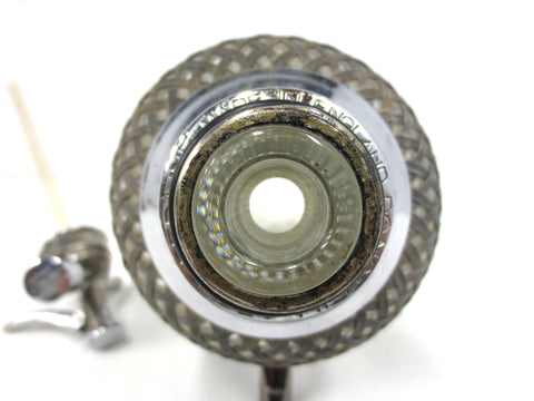 Authentic seltzer and soda syphon signed Sparklets Makers London, England. Fully functional, professionally cleaned. Thick glass bottle and base protected by metal lattice. Removable head and straw inside. Head is missing chrome due to age and use. Great addition to your mid century bar on man cave.