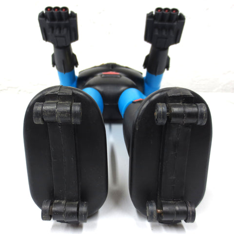 All original, both arms have working missile launchers. Vintage 1970's jumbo Mazinger robot, 22 1/2 inches tall. Excellent condition, no cracks, no discoloration. All decals are original, waist decal in excellent condition, others are partial. Includes 2 original missiles. All wheels under its feet are still rolling, some missile brackets on the sides of its legs are missing (see photo 10). Stands well on its own, head, arms and legs turn well and are sturdy. From a collector's estate in Montreal (Quebec, Canada). Replacement decals are easy to find (about $20 online) however we kept its originals on for collectors. Weighs 1 kg, robot measures 9 1/2 X 22 1/2 X 4 inches.