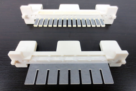 Excellent condition, clean, no cracks. Includes a fixed height gel tray comb 8-well and a 15-well. Fits the Bio-Rad Sub Cell GT Mini electrophoresis unit model. Holds on other 8.5 cm wide gel trays. Gel tray not included.