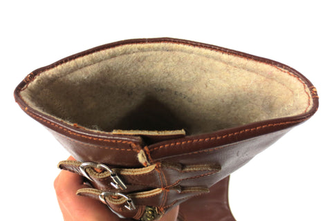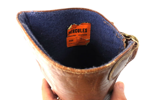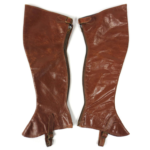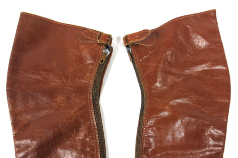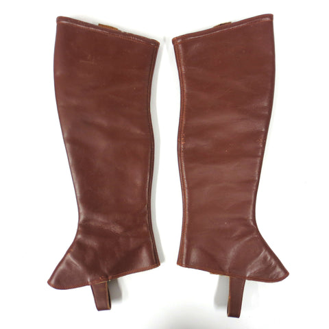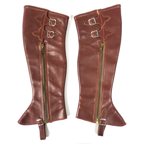 Both pairs are in excellent condition, sturdy, clean and complete. Vintage spats for horse riding, all genuine leather. Both pairs are small sizes: 14 1/2 and 17 1/2 inches long. The largest one is marked "Hercules, Size 11, Montreal, Canada). Great as wall hangers for your equestrian decor and still fully functional for horse riding.