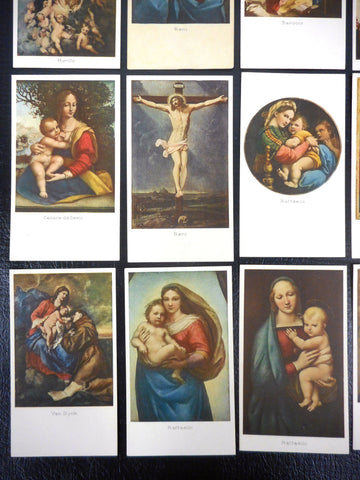 31 Antique 1920's Mini Cards Lithographs of Religious Scenes by Botticelli, Leonardo, Raffaello, Batoni, Printed in Italy