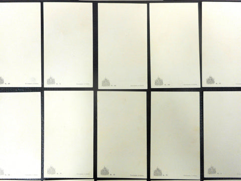 All 31 cards are in mint condition and from the same series. Printed in Italy in the 1920's by ZMC. Each one is numbered and measures 3 7/8 X 2 1/4 inches. Beautiful color lithographs of religious scenes by legendary painters: Barocci: #39, Fra Bartolomeo: #40, Batoni: #33, Bellini: #22, Botticelli: #6, Dolci: #11, 35, Van Dyck: #10, 42, Leonardo: #46, 47, Lippi: #48, Luini: #31, Mignard: #12, Murillo: #4, 13, 28, 43, 45, Pinturicchio: #2, Raffaello: #1, 9, 32, 41, Reni: #24, 44, A. Del Sarto: #3, Sassoferrato: #21, 23, 34, Cesare de Sesto: #8.