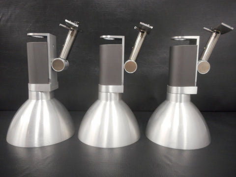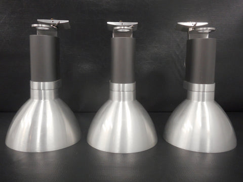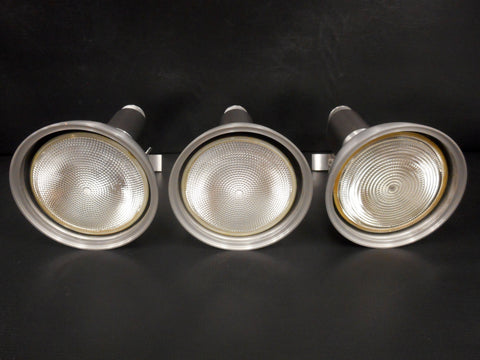 All 4 are in excellent condition, high-end spotlights, halogen flood lights included. Only 3 shown in our photos, however there is an extra one included, same excellent condition. Ready to install on your modern kitchen, office or boutique light track. Engraved "Lightolier" on each one, made by Philips. Support PAR38 lamps up to 250 watts. Swivels 360 and easy to unhook for cleaning (quick lever). Each one has a 5 7/8 inches diameter, is 6 inches tall and weighs 980 grams including light bulb. For installation on light tracks with maximum wattage marked "TD" or on Lightolier Lytespan. Acquired from a closed down luxury store in Montreal.