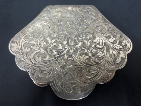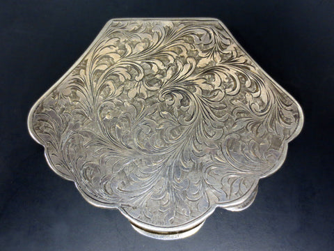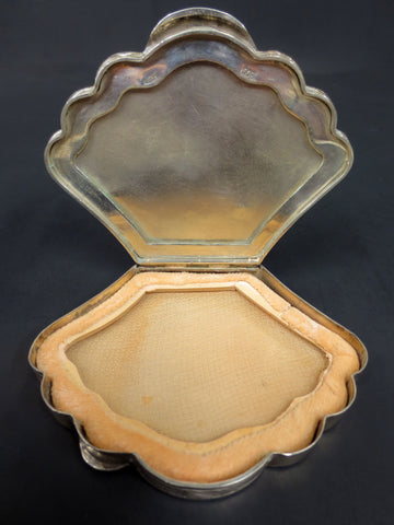 Antique Italian 800 Silver Cosmetic Case, Victorian Shell Shaped Powder Box
