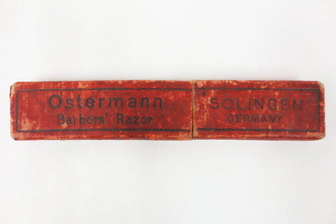 Box is complete and sturdy, original bright red color. Clear markings Ostermann Barbers' Razor Solingen Germany. Ideal for a collector who has the matching straight razor. This rare box will increase its value.