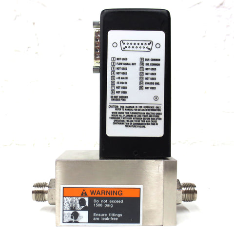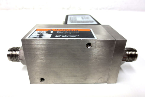 Fully functional, original tags, very clean. Mass flow sensor for hydrogen by Brooks Instrument, model 5860 E Series. Includes two swagelok 3/8" #316 fittings. Flow: 0-150 SLPM H2 @ 0°C, 1013.25 mBar. Gas: Hydrogen. I/O signal: 0-5 Vdc. Power: +15 Vdc. P1/P2: P1= 5 psig. 1500 psig max. Base is model 5861E. Pre-owned and tested industrial surplus from a closing plant in Quebec, Canada. Minor surface scratches only.