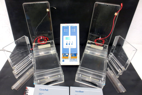 Complete, clean and functional gel electrophoresis system by Autobase Q-Life Systems. Surplus from the National Research Council of Canada. System is software assisted and includes:
