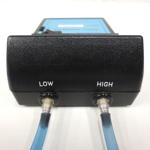 Excellent condition, fully functional, tested and certified. Dual digital manometer by Modus Instruments U.S.A, model MA2-0051. Range is approximately 0.5 in. of water. Original belt pouch, 2 tubes and a new 9 volt battery included. Ideal instrument for HVAC test and balance work, furnace draft measurement, clean room or paint spray booth differential pressure measurement.