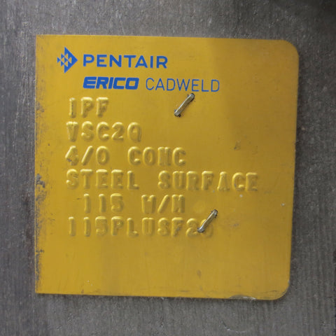 Very clean, lightly used, includes Cadweld clamp. Mold is marked IPF VSC2Q 4/0 CONC Steel Surface 115 W/N 115PLUSF20.