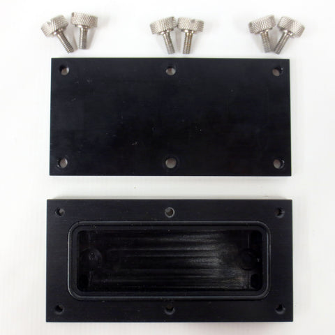 Excellent condition, clean, complete. Microplate cassette for storing and shipping DNA and protein samples by express mail. Cassette measures 4 5/8 X 2 3/8 inches, has a thick metal base and cover and aluminum screws. A sealing gasket on the insides allows the transportation of liquids.