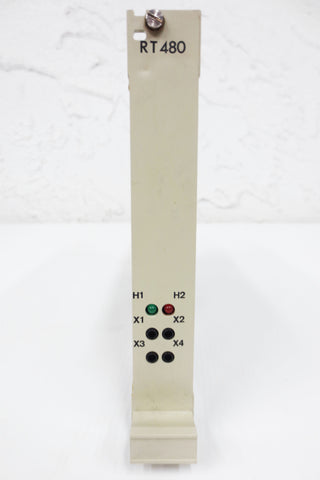 Like new, inspected and functional, no box. Surplus from an aluminum manufacturer. Control circuit board card by Brown Boveri / BBC Electronik, model RT480B, GNT7081401R0002 RT480 9021. Measures 7 1/2 X 5 1/8 inches.