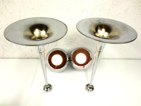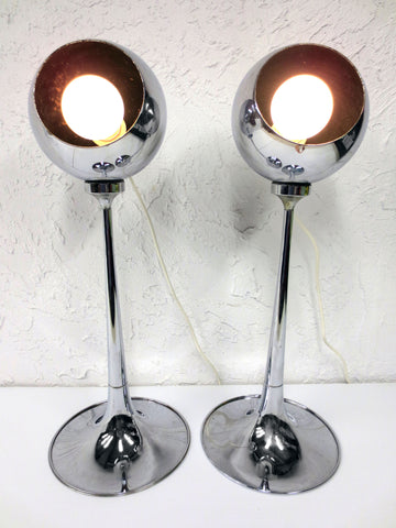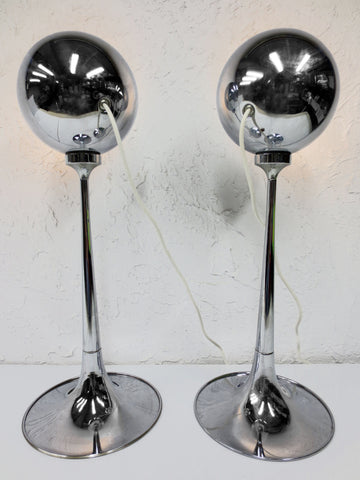 Vintage Lampadari Reggiani Chrome Floor Lamps Pair 2' Tall, Space Age Eyeballs K