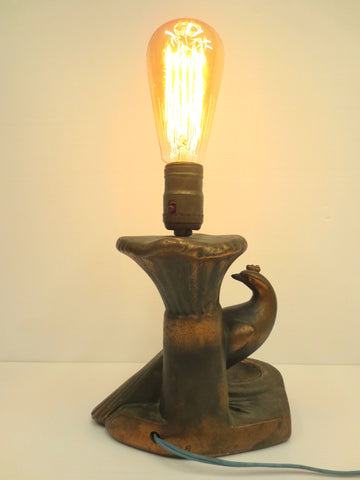 Vintage Antique 1930's Peacock Desk Light Lamp with Inkwell Rest, Edison Bulb