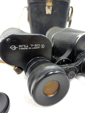 Vintage Binoculars 7X50 BNU CCCP Russia USSR, Leather Case, Night Day Lenses