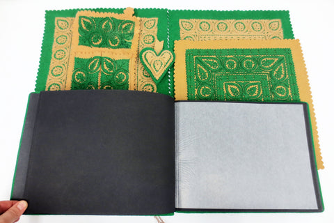Vintage Handmade Green Felt Photo Album Scrapbook, Tablecloths, Pocket & Heart 6 Pieces Set