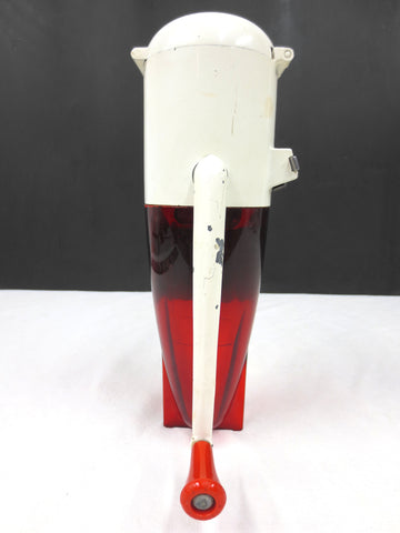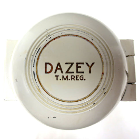 Complete, fully functional. No cracks, no missing teeth. Measures 10 inches tall and has a 3 inches diameter. Wall mount and screws, ready to install. Original handle tip and white paint, some paint loss. Signed Dazey St.Louis, U.S.A, Model 160. Great for your vintage kitchen or man cave bar.
