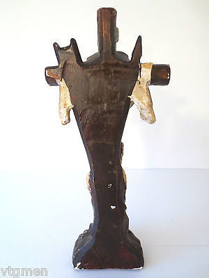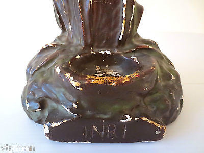 - Round space on base for holy water, red blood on hands, forehead, torso and knees.
