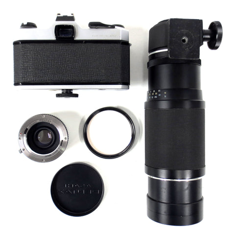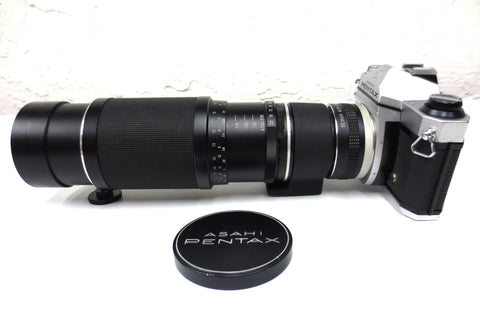 Zoom in mint condition, very clean and ready to use. Has an M42 screw mount and includes a Seimar Auto Tele Converter 2X to fit Pentax-K mount also. Zoom is a Asahi Pentax Super Takumar f/4.5 70-150mm, serial 3520423. Also included:
