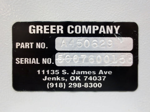 Very clean, complete, fully functional. From a closed down plant in Montreal, Quebec. This is an MG500 Computer for Terex link-belt cranes made by the Greer Company. Original manufacturer sticker marked Greer Company, Part No. 1450629, Serial No. 5007600153, Jenks,
