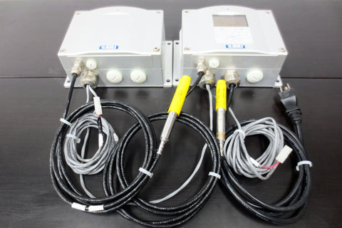 Fully functional, very clean, wired, plugs into a standard grounded outlet. Includes 2 interconnected Vaisala HMT337 Dewpoint & Humidity/Temperature transmitters. Each transmitter has its own Vaisala Power-1 internal power supply (120VAC to 24VDC) and one of them has digital display. Includes 2 temperature/humidity probes and the user's guide (209 pages pdf). High quality, made in Finland. Pre-owned and tested industrial surplus from a closing plant in Quebec, Canada. Minor surface scratches only.