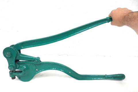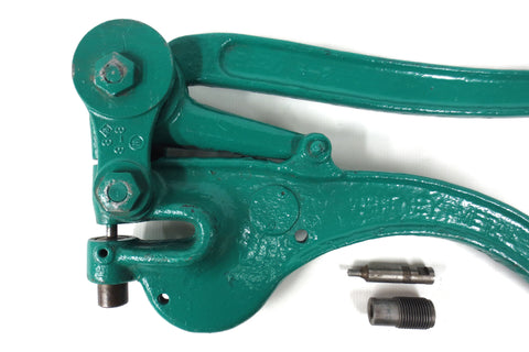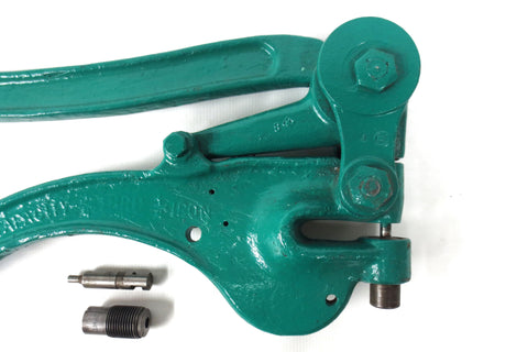 Fully functional, excellent condition, no rust. This deep sheet metal punch tool is signed Whitney Metal Tool Co. Rockford Illinois, Made in USA. Marked capacity 1/4 Thru 1/4 Iron. Measures 25 inches long and weighs 16 pounds. Comes with 2 clean punches and 2 dies that are easy to remove. Previous owner painted it with industrial green paint to protect it. Can easily be removed as needed.